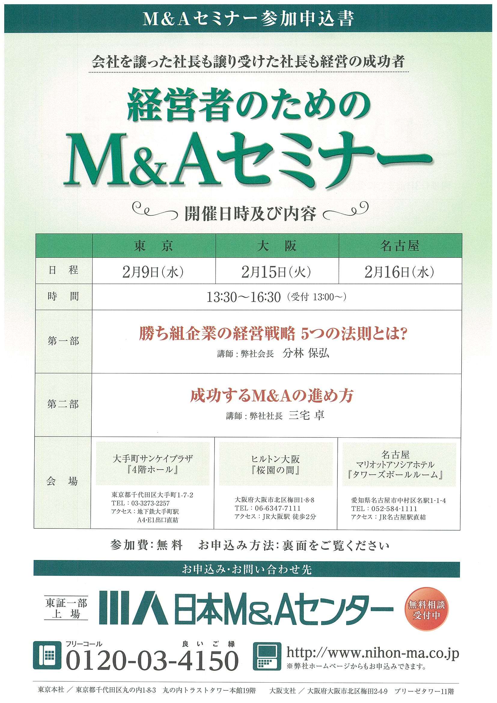 2月に経営者のためのM&Aセミナーが開催されます。